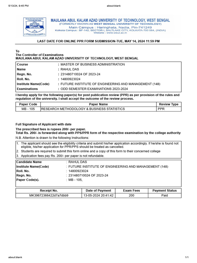 MAKAUT PPR Form Fill-Up For ODD SEM | How To Apply For PPR? Paper ...