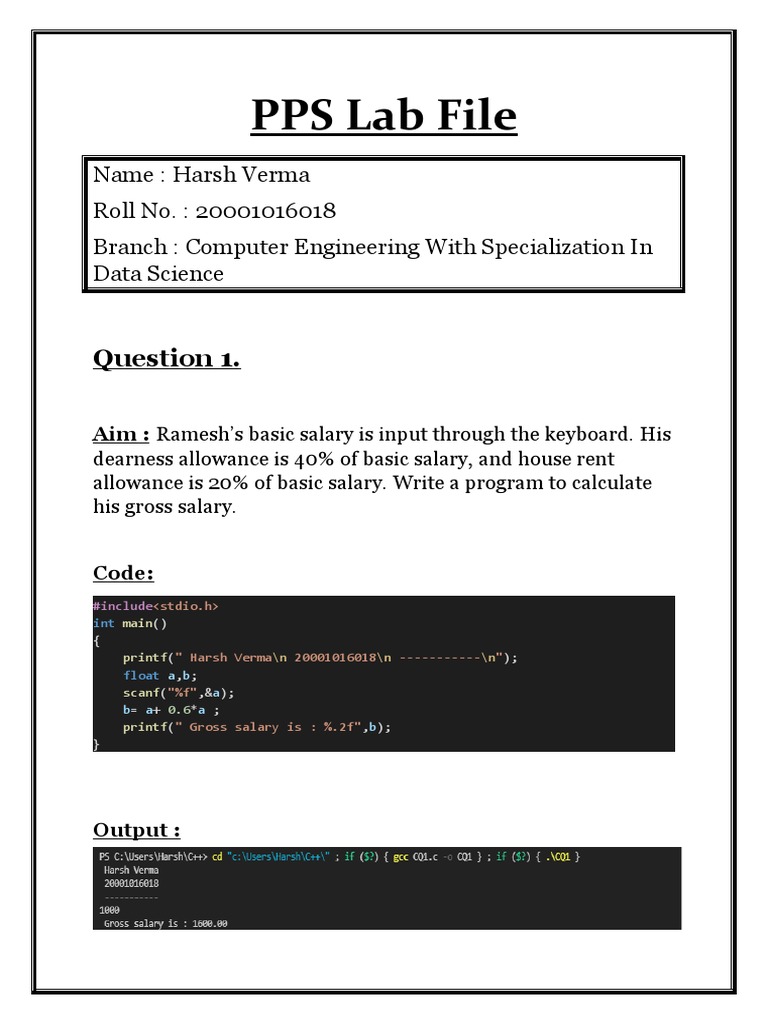 PPS Lab File Part-1 | PDF