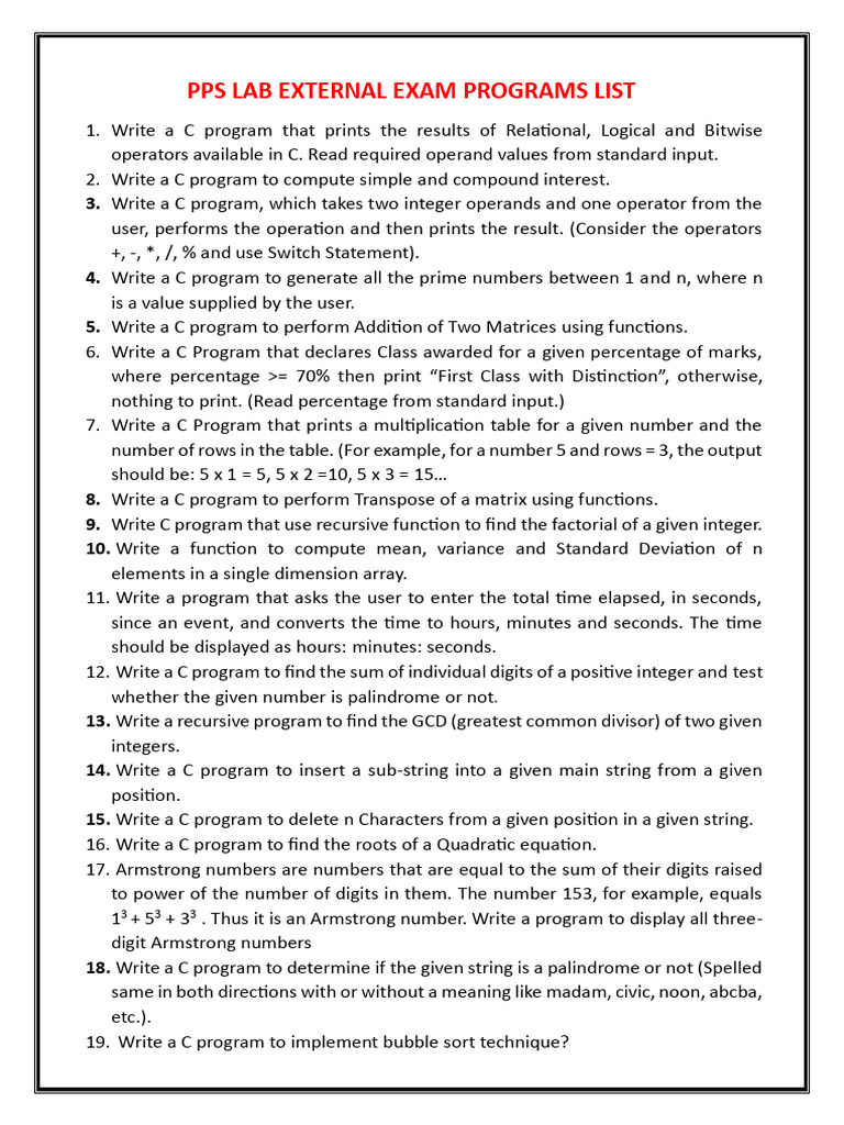 PPS Lab External(24-25) | PDF | Pointer (Computer Programming) | String ...