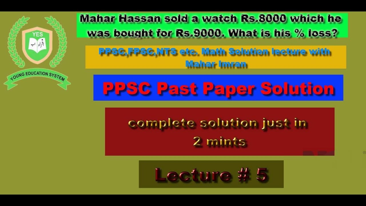 PPSC Math question solution|| percentage loss solution||lecture 5 ...