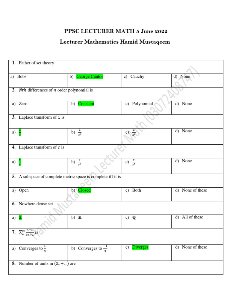 Ppsc spsc fpsc nts lecturer mathematics mcqs past papers – Artofit