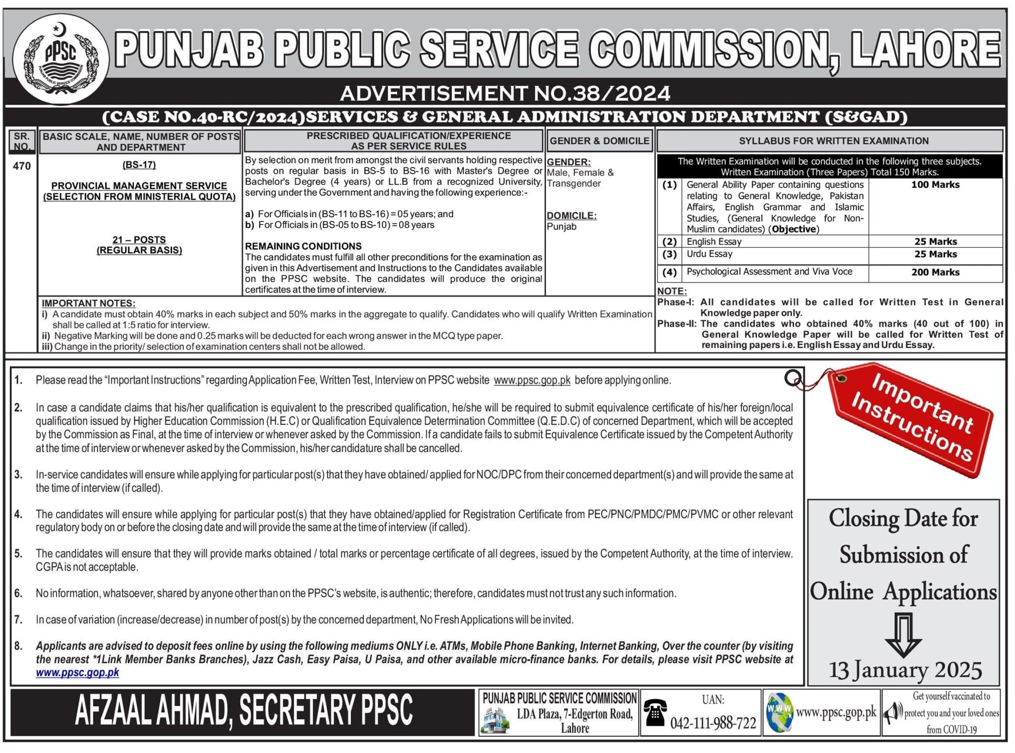 PPSC Group A Recruitment 2025 Direct Link Apply 21 Posts ...