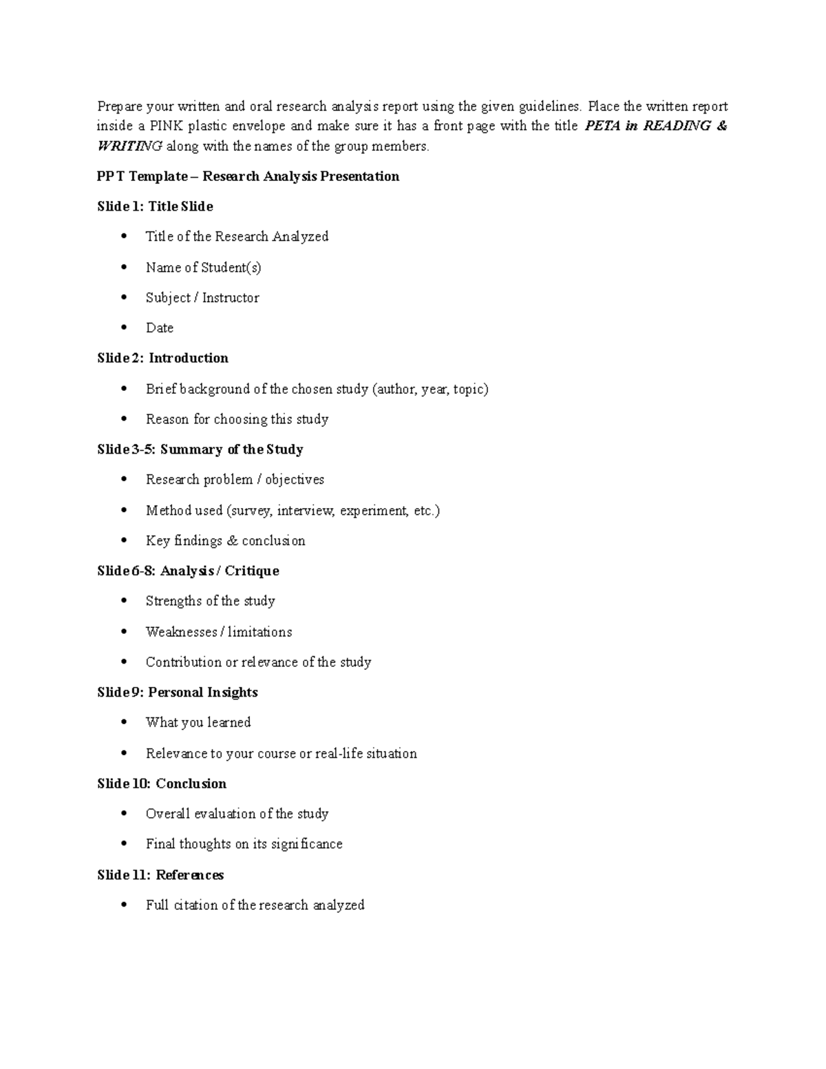 RW-PETA-Q2: Research Analysis Report Guidelines and PPT Template - Studocu