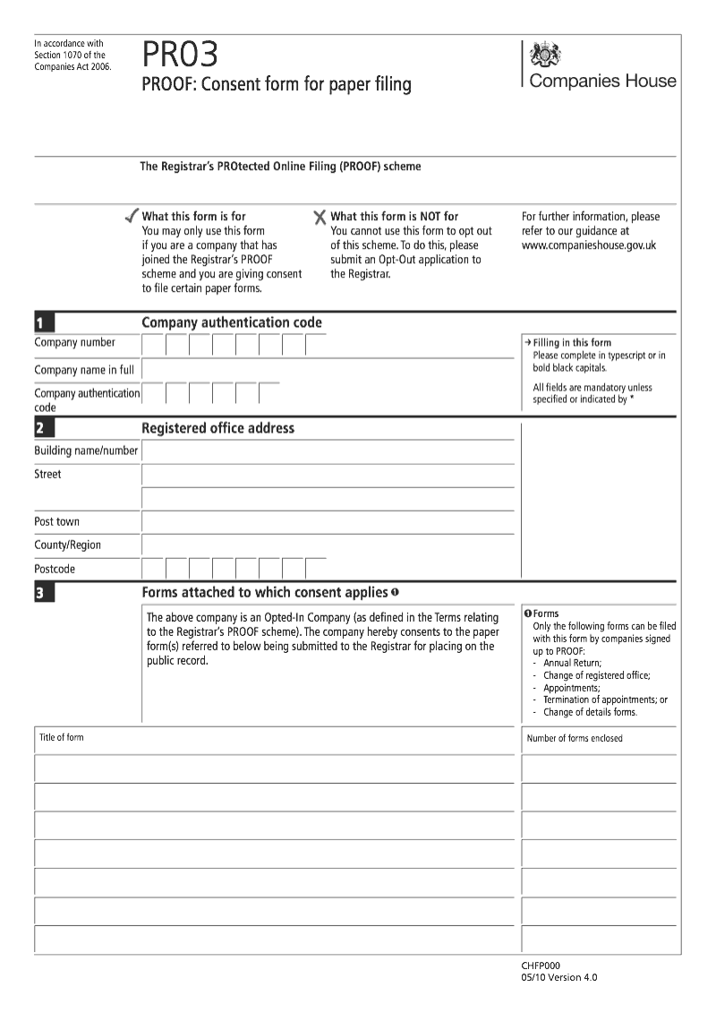 PR03(CH) Consent form for paper filing (Companies House - PROOF scheme)