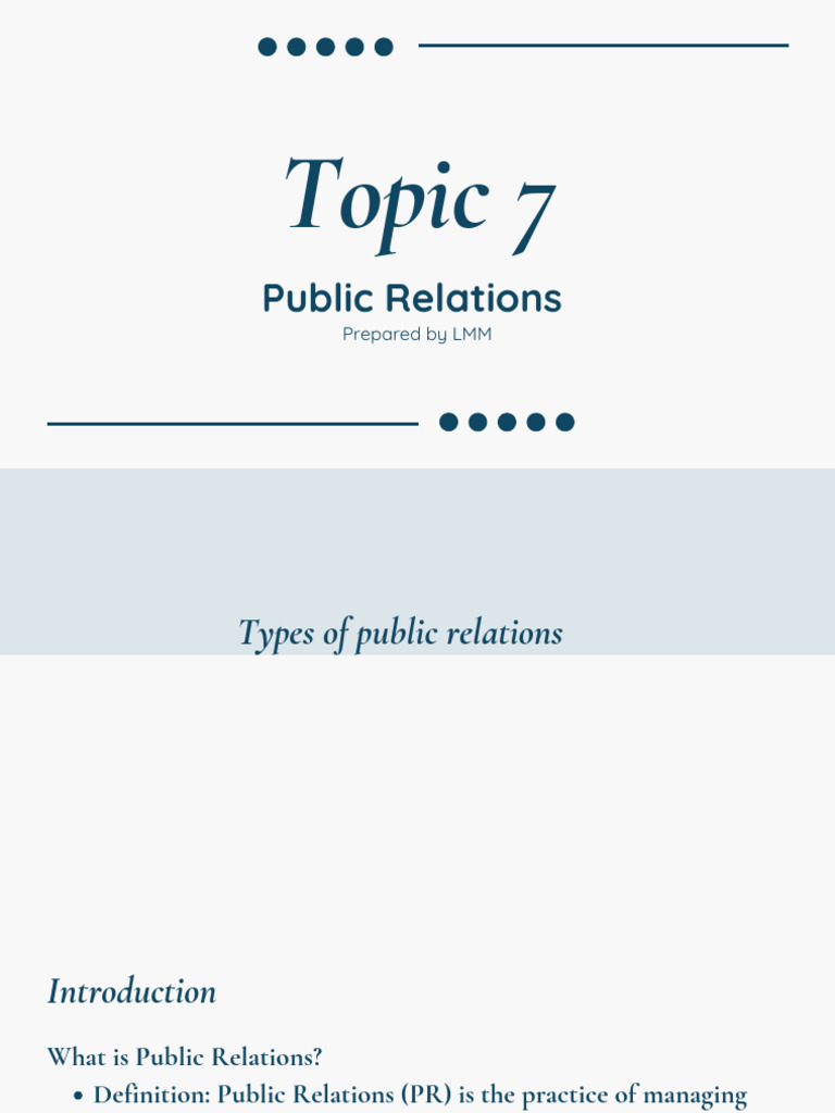 PRS340 Overview of PR Notes - Topics I: Overview of Public Relations ...