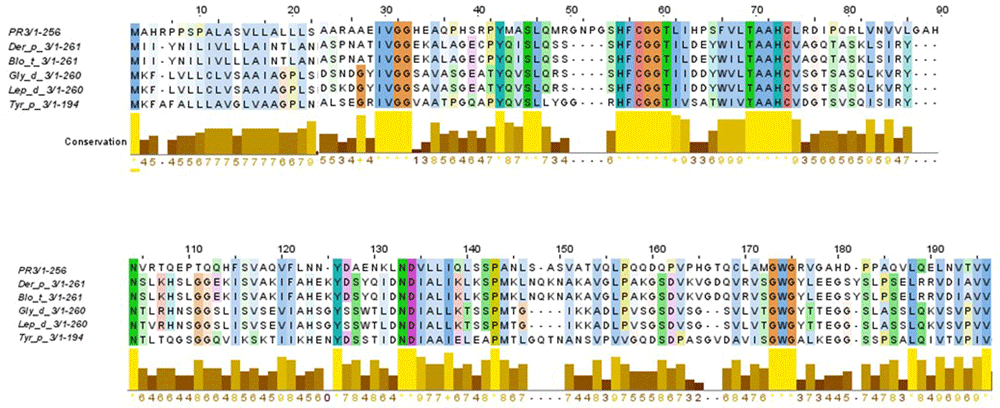 Cartoon models of PR3 and Der p 3. (A) PR3; (B) Der p 3. According to ...