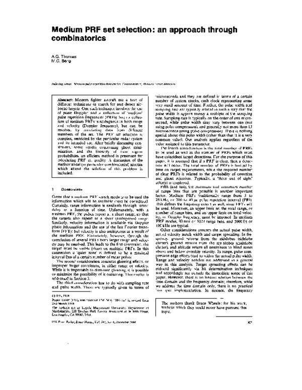 (PDF) Medium PRF set selection: an approach through combinatorics