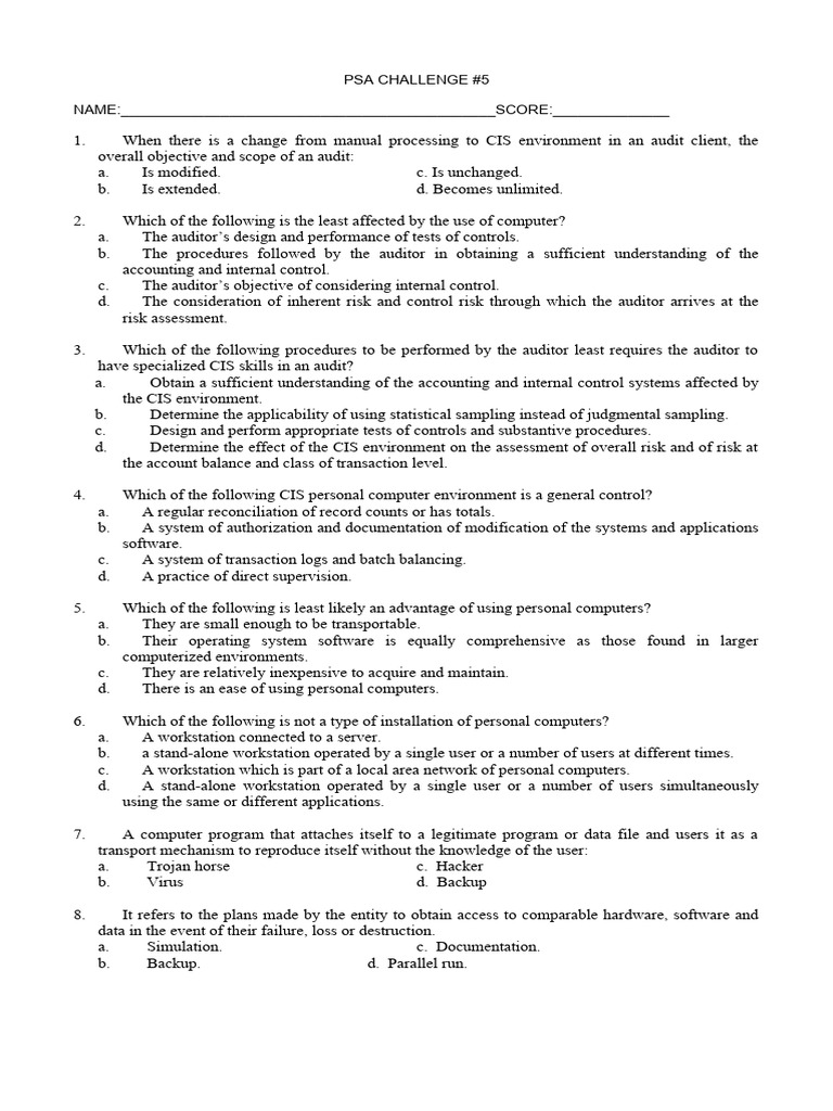 Psa Challenge #5 | PDF | Auditor's Report | Audit