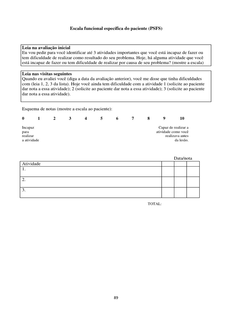 Escala Funcional Específica Do Paciente (PSFS) | PDF