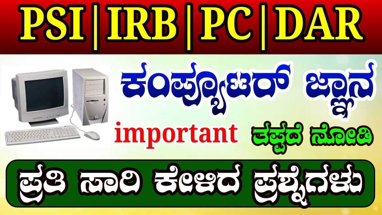 ಕಂಪ್ಯೂಟರ್ ಪ್ರಶ್ನೋತ್ತರಗಳು || Computer Questions For PC PSI SSC MTS ...