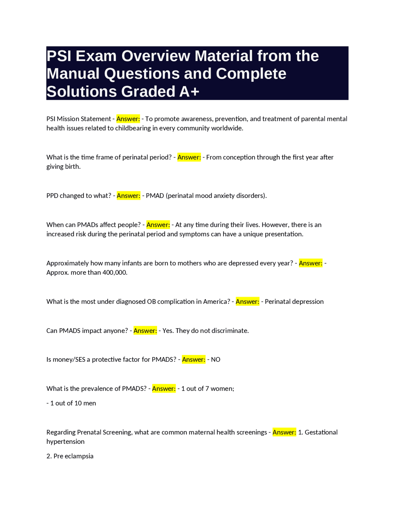 PSI Exam Overview Material from the Manual Questions and Complete ...
