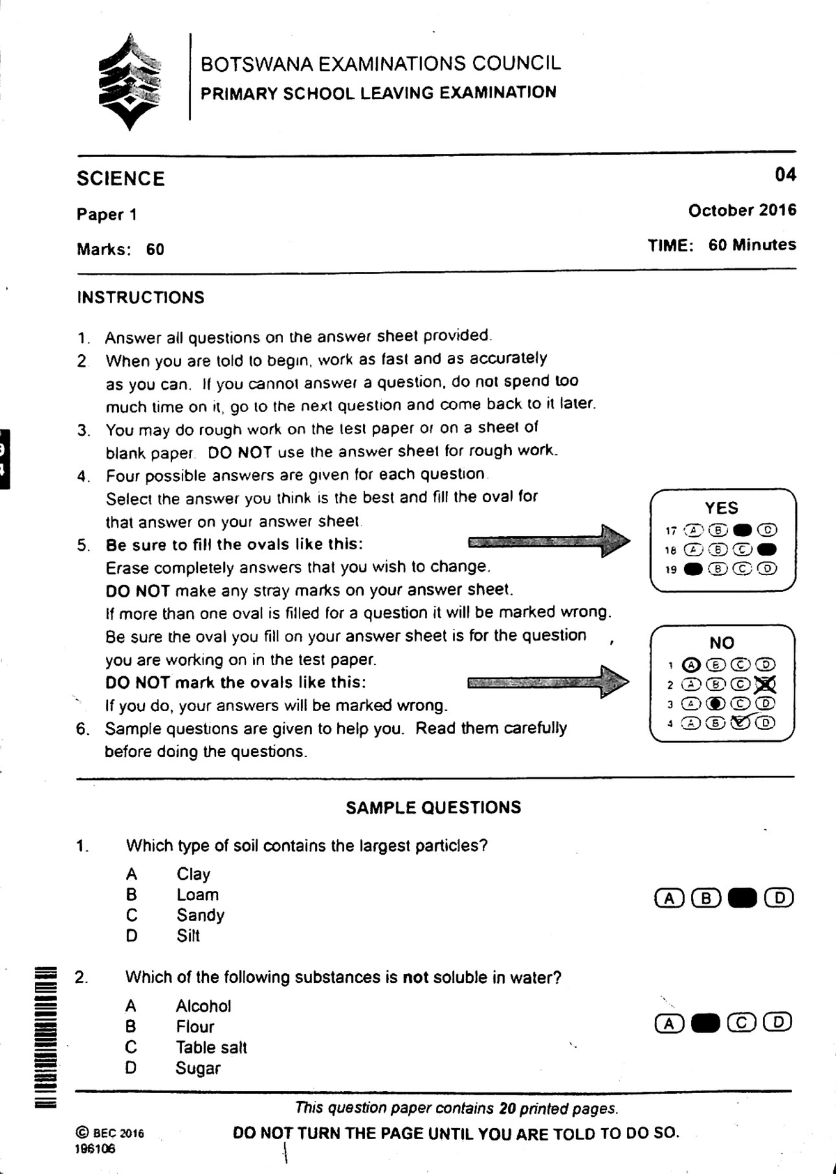 PSLE Science 2016 - Past Examination Paper with Sample Questions - Studocu