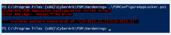 PSM - Applocker PS Script gives error '*' violates pattern constraint