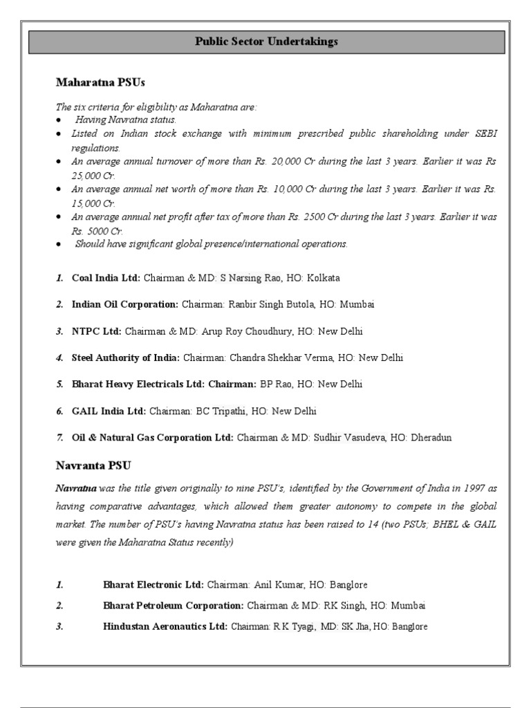 Maharatna, Navratna and Miniratna PSUs - General Awareness Study ...