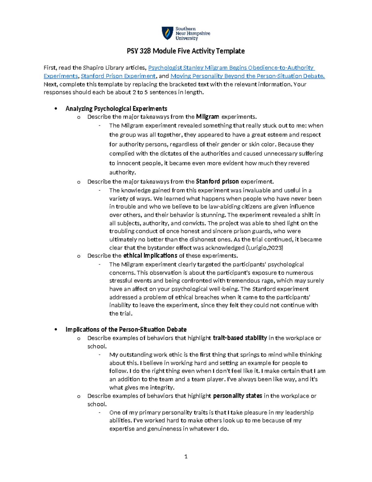 PSY 328 Module Five Activity Template - PSY 328 Module Five Activity ...