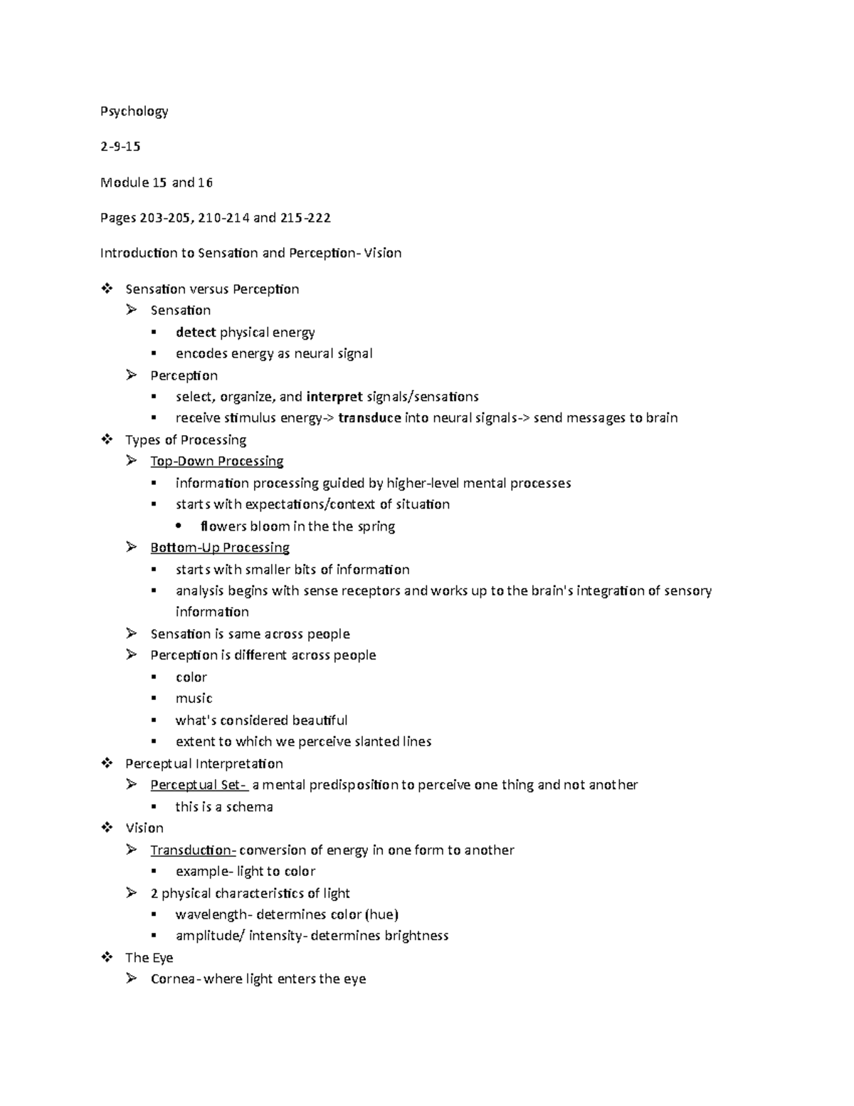 PSYC 111 Lecture 15, Module 18 Notes - Lecture 15 - Module 18 - Sensory ...