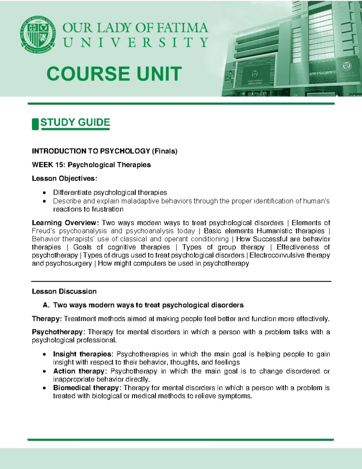 PSYC111 Module 15-Psychological Therapies - INTRODUCTION TO PSYCHOLOGY ...