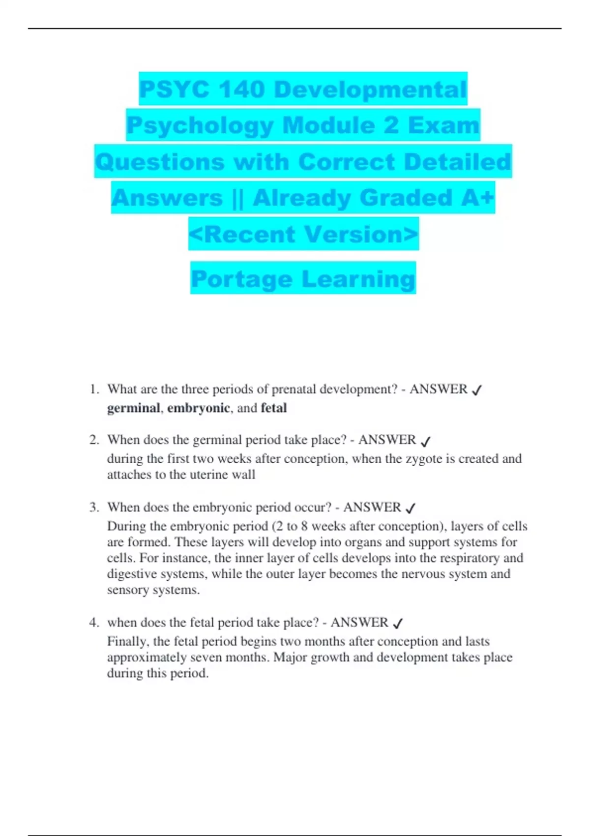 PSYC 140 Developmental Psychology Module 2 Exam Questions with Correct ...