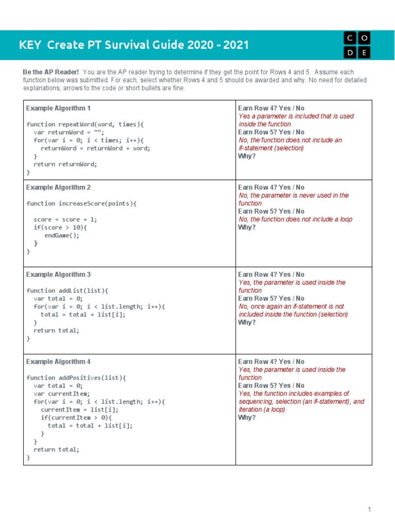 AP Practice - Create PT - Algorithm One component of | Chegg.com