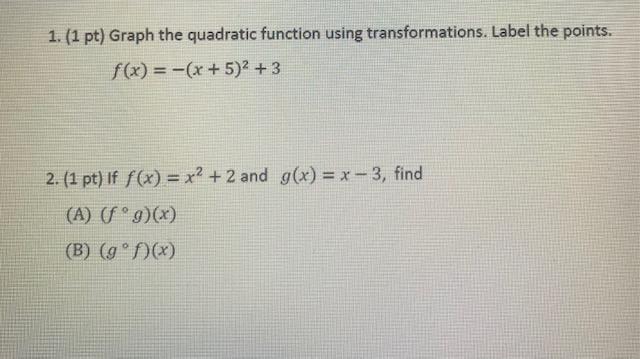 Solved 1. (1 pt) Graph the quadratic function using | Chegg.com