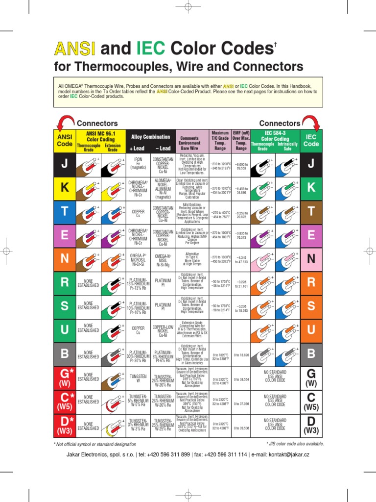 ANSI and IEC Color Codes For Thermocouples, Wire and Connectors | PDF ...