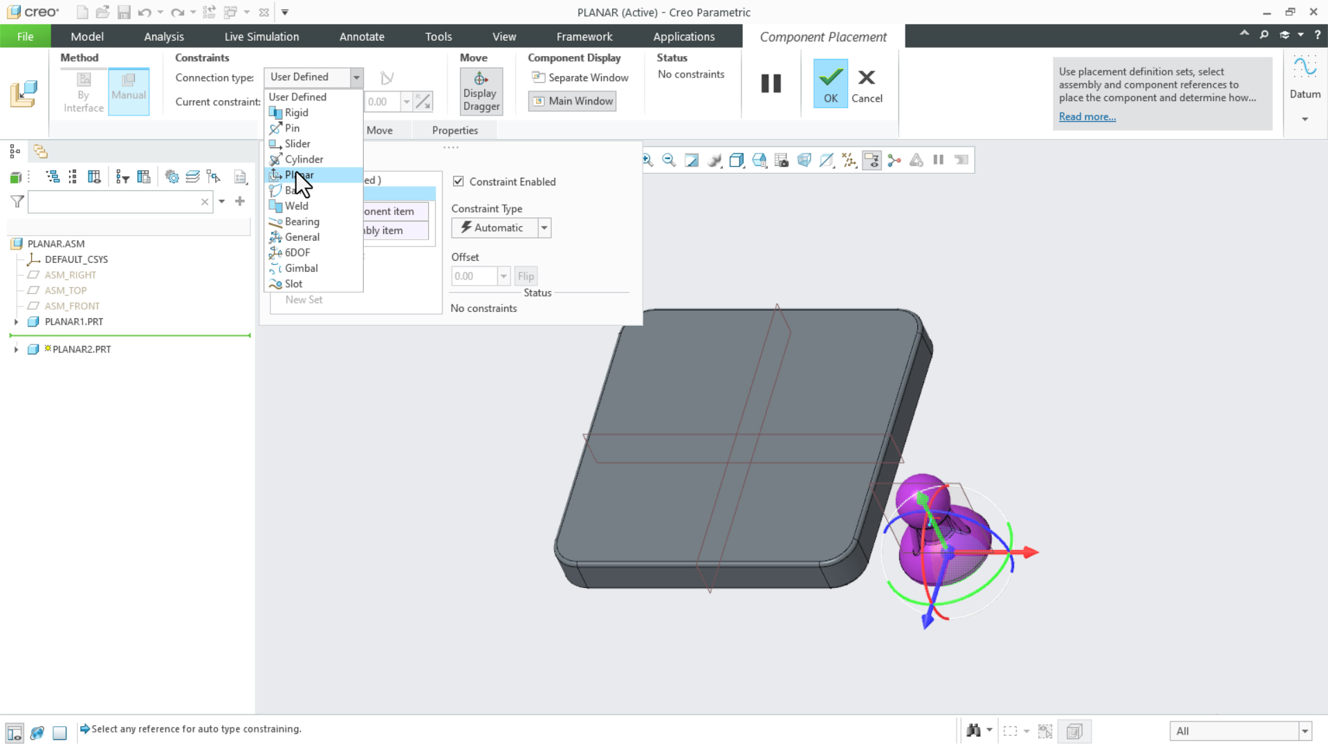 Planar Connection Sets | tutorial | PTC Learning Connector