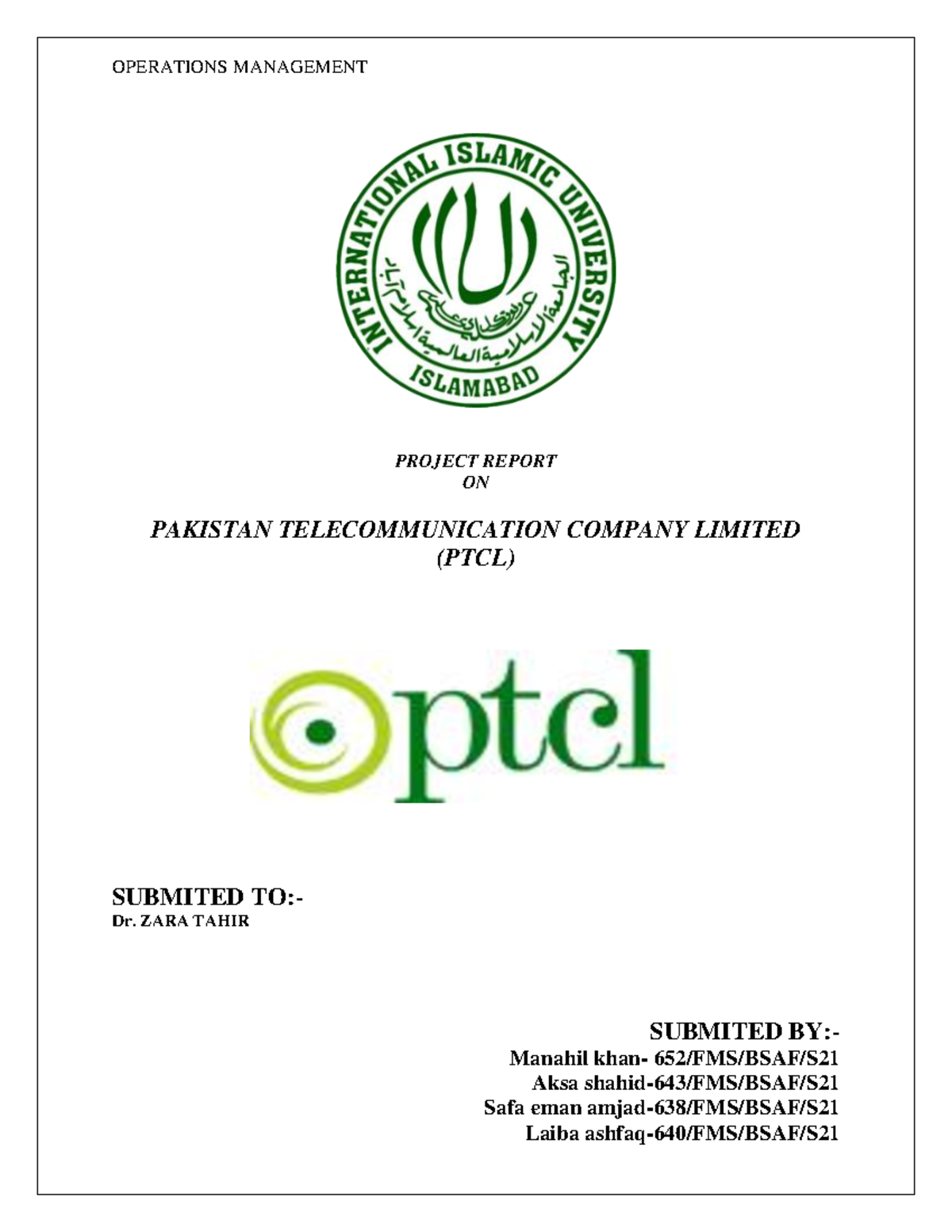 PTCL-final report - PROJECT REPORT ON PAKISTAN TELECOMMUNICATION ...