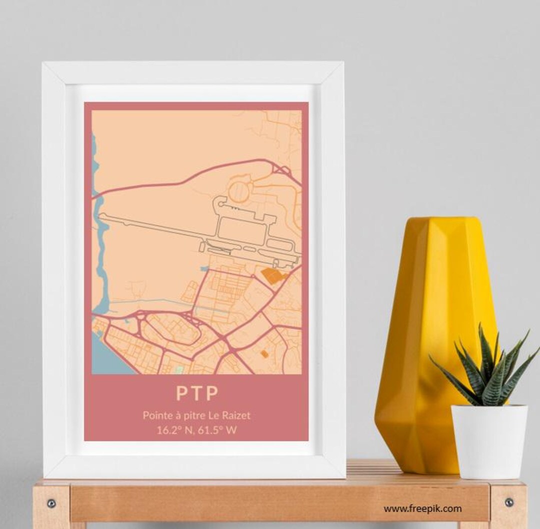 Minimalist PTP Airport Map Pointe à Pitre Le Raizet Wall Art Travel ...