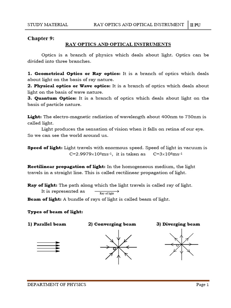 II Pu Physics Full Notes | PDF | Scattering | Light