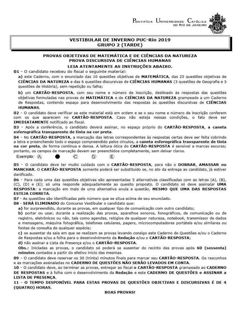 P Puc Rio 2019 Inverno-Objetiva Matematica Ciencias Da Natureza e ...