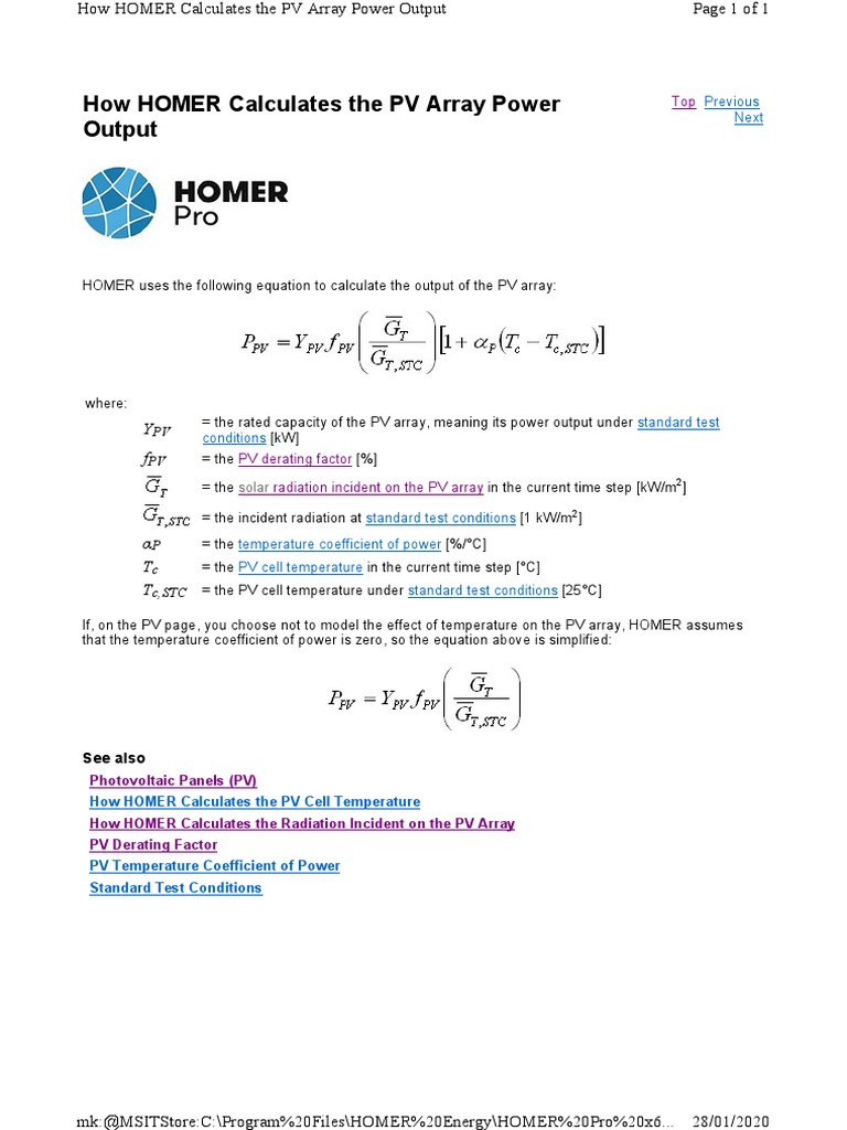 HOMER PV Array Power Calculation | PDF | Teaching Methods & Materials ...