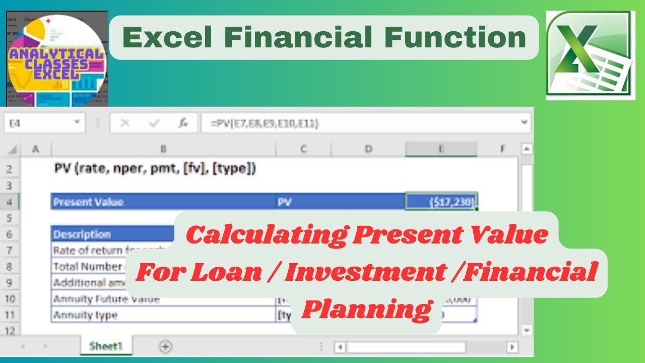 Understanding the PV Function in Excel for Financial Analysis and ...