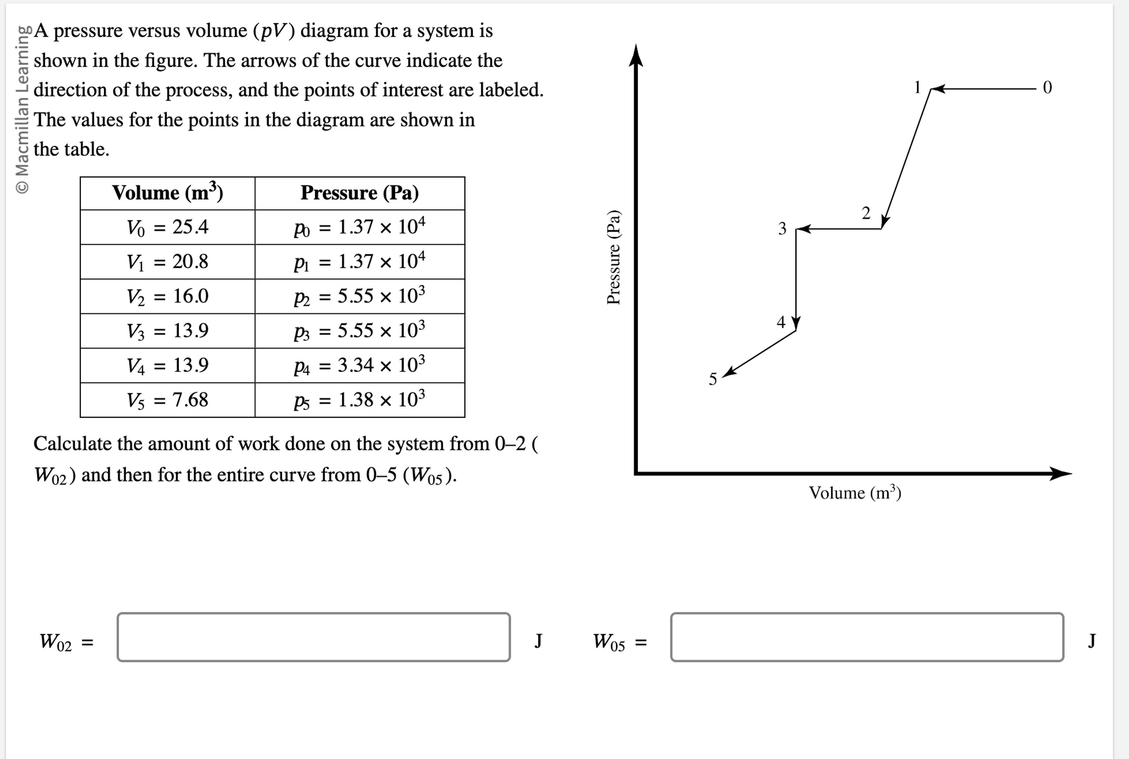 Solved A pressure versus volume (pV) diagram is shown in the | Chegg.com