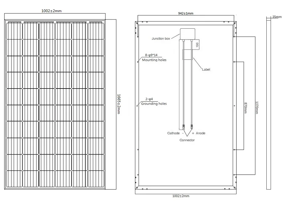 Solar Panel - Monocrystalline Dimensions & Drawings | Dimensions.com