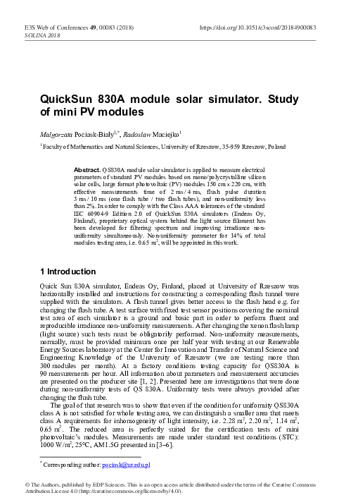 (PDF) QuickSun 830A module solar simulator. Study of mini PV modules