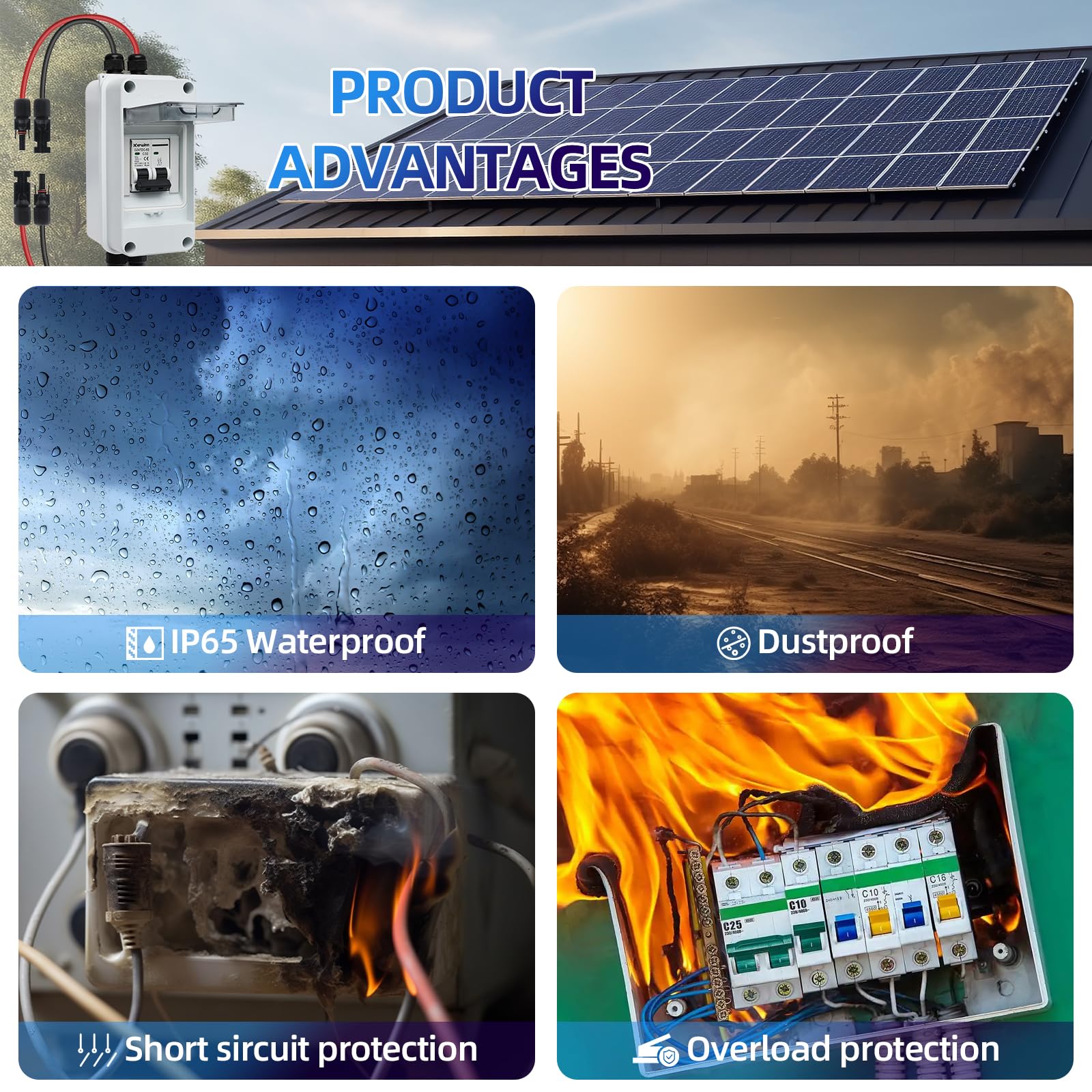 Treesunshine Solar PV Combiner Box, 32A DC 1000V 2-string Solar ...