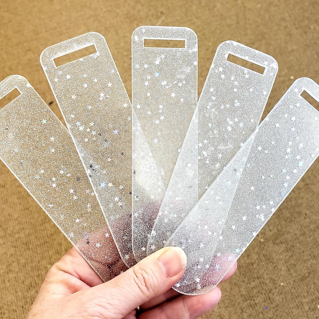Bookmark Blanks, Set of 5 Clear Acrylic Plastic Bookmarks With Sparkly ...