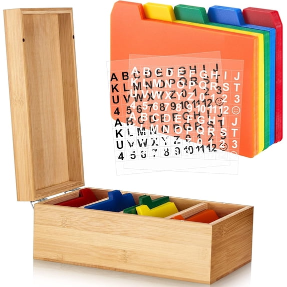 3 x 5 Inch Index Card Holder Set, Bamboo Organizer Box with 50 Dividers ...