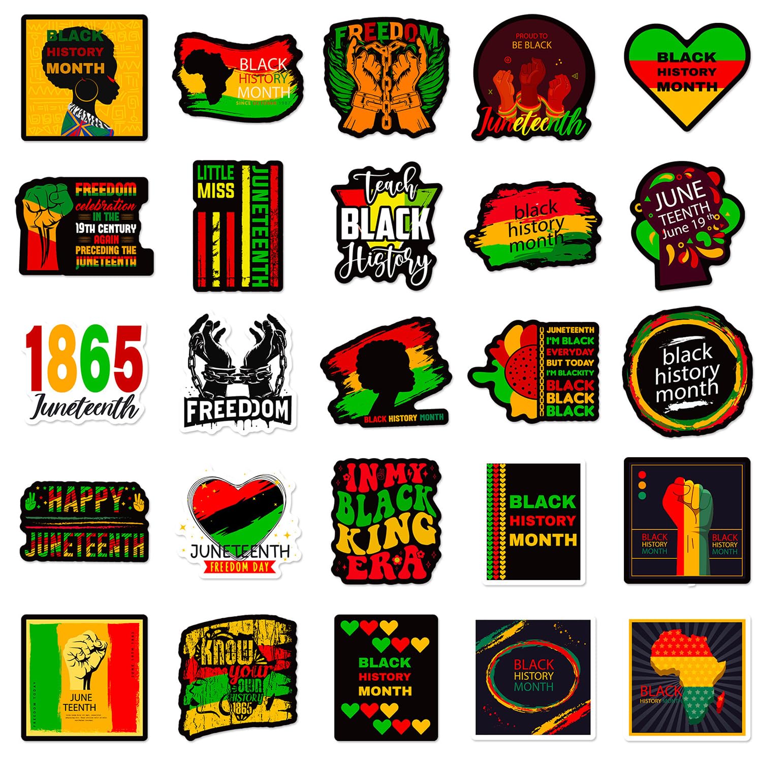 20-Sheet Black History Month Stickers – 9 Designs, Pan-African Colors ...
