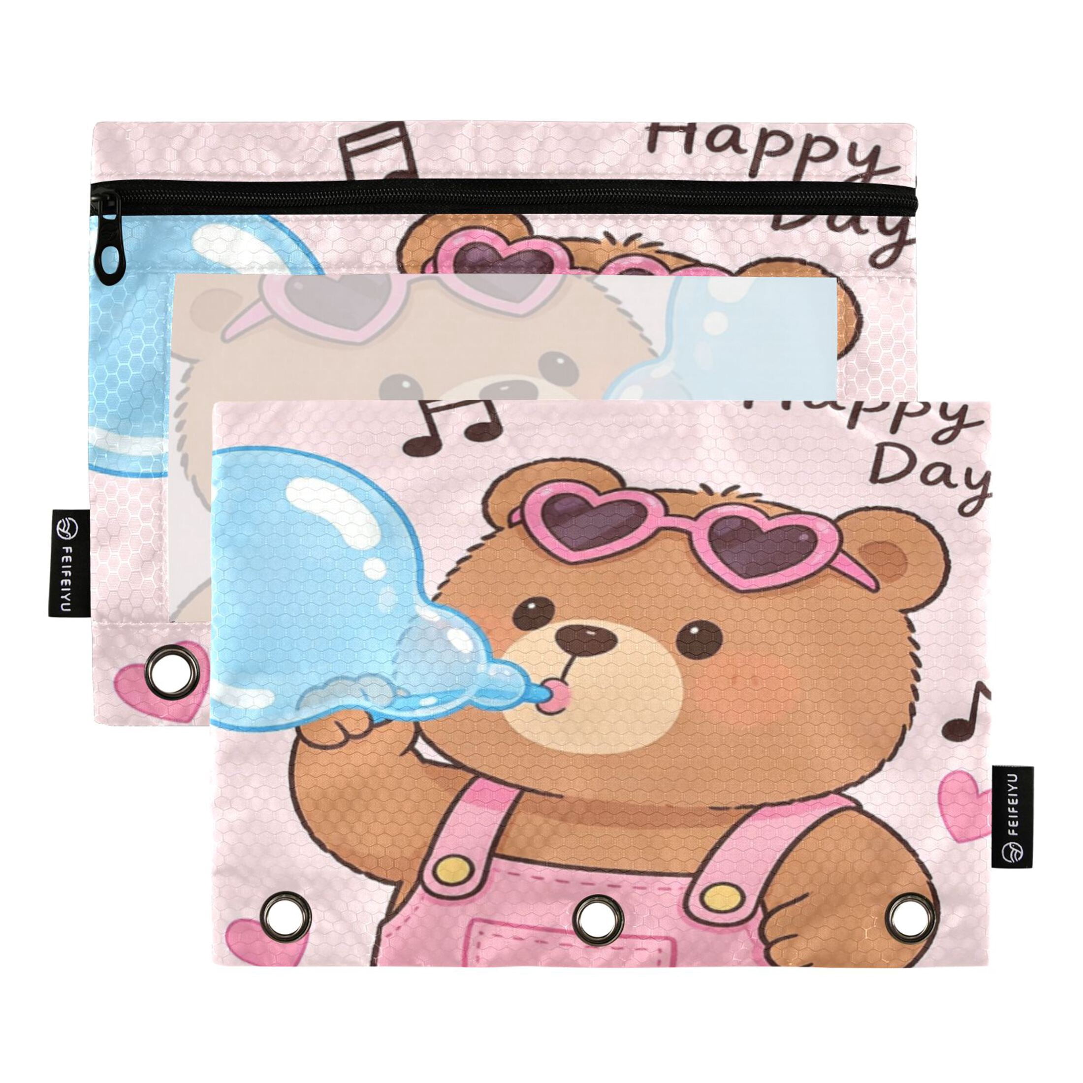 4 Ring Pencil Pouch for Binder, Clear PVC with Oxford Fabric Trim ...