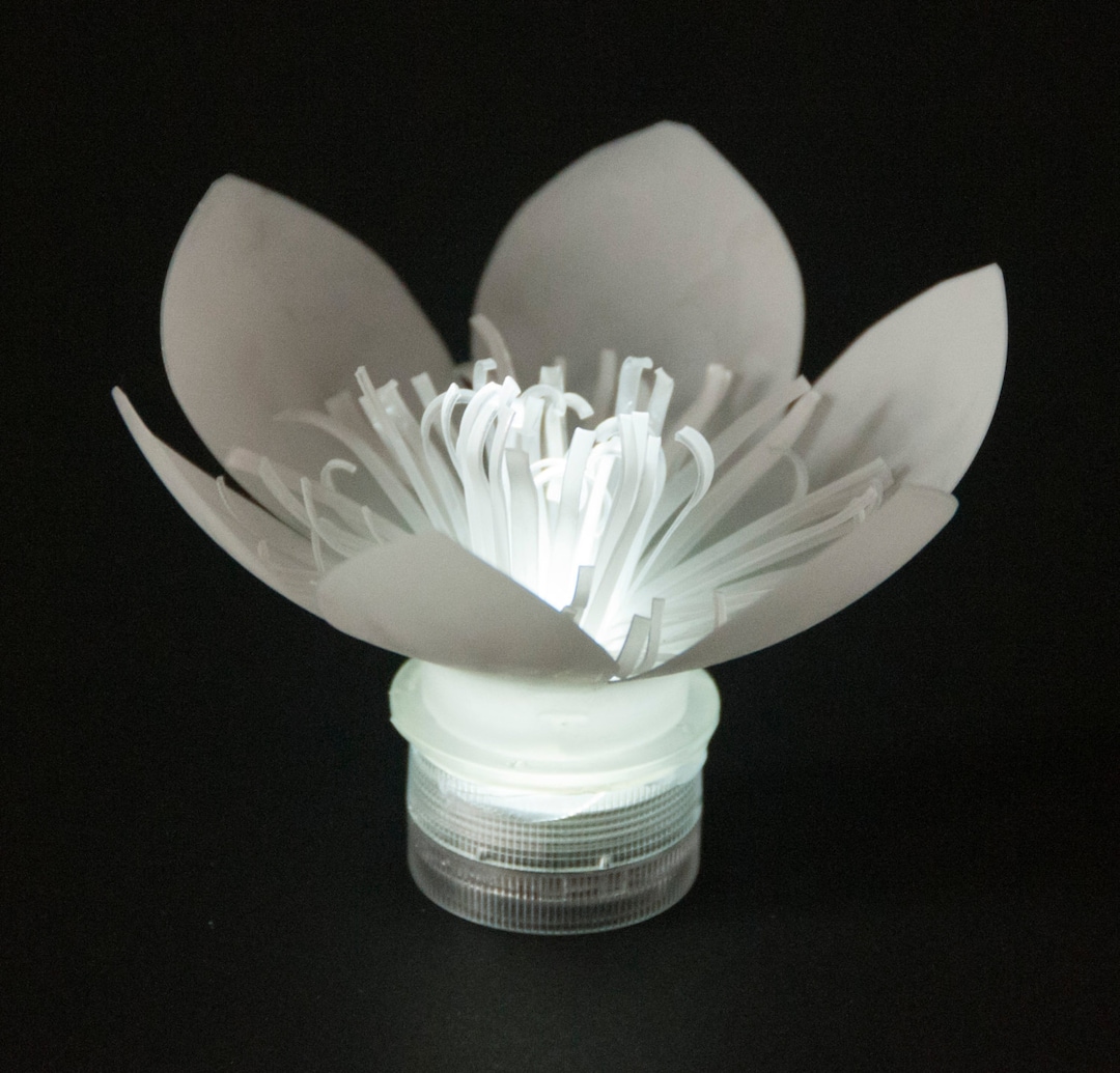LED upcycled plastic bottle flower — Sarah Turner Eco Art & Design