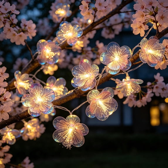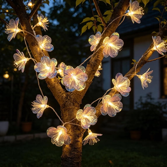 118 Inch Artificial Flower String Lights Outdoor White Floral String ...