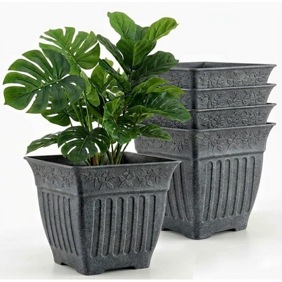 18'' Large Square Planter for Plants - 4 Pack Imitation Cement Plastic ...