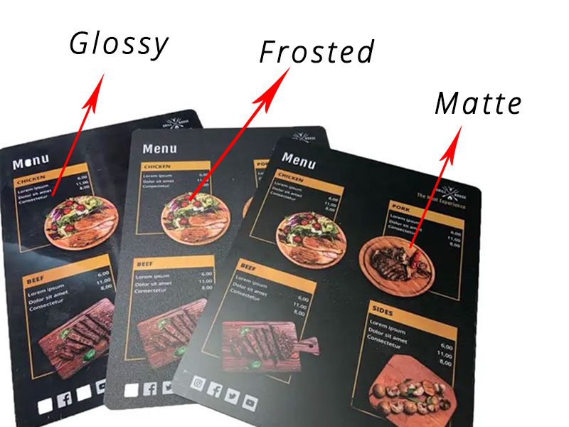 Custom Plastic Menus, Laminated Menu Printing