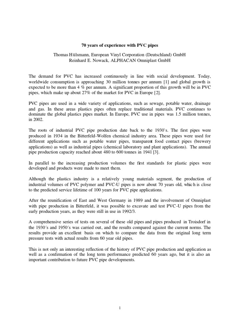 70 Years of PVC Pipe Development | PDF | Polyvinyl Chloride | Extrusion