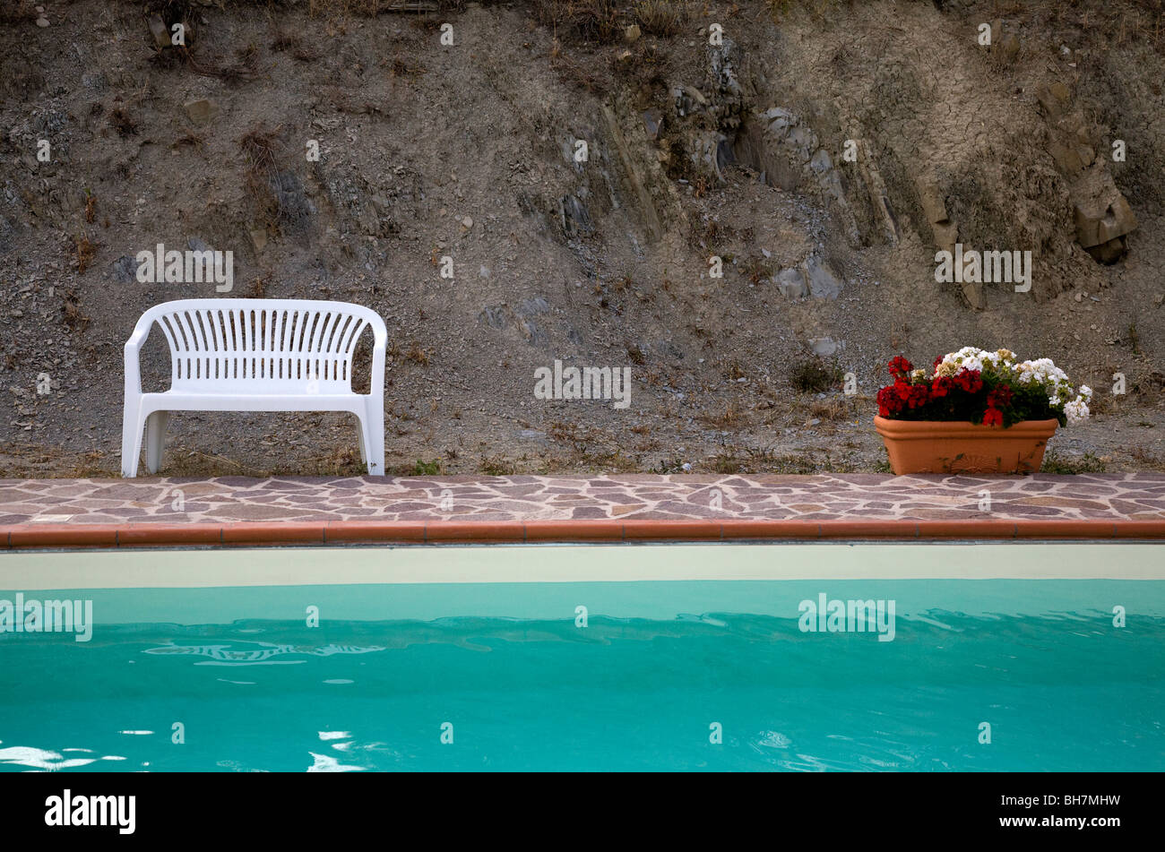 Plastic bench by pool Stock Photo - Alamy