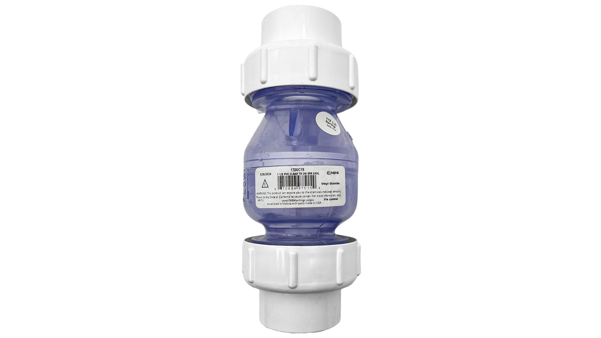1-1/2" Clear PVC Spring Check Valve | True Union Backflow | 1700C15