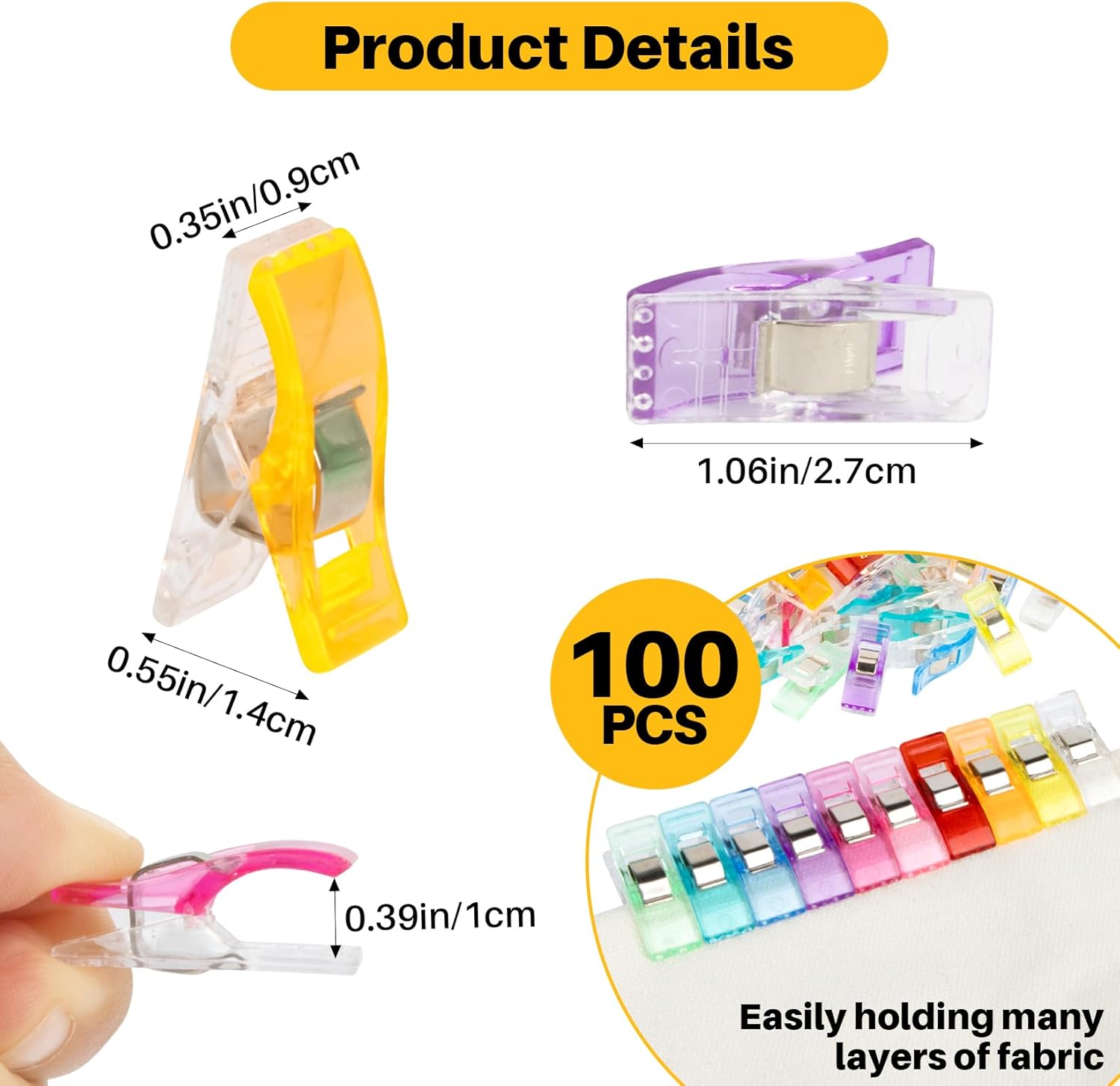 100 count Sewing Clips for Fabric and Quilting - Plastic Clips Fabric ...