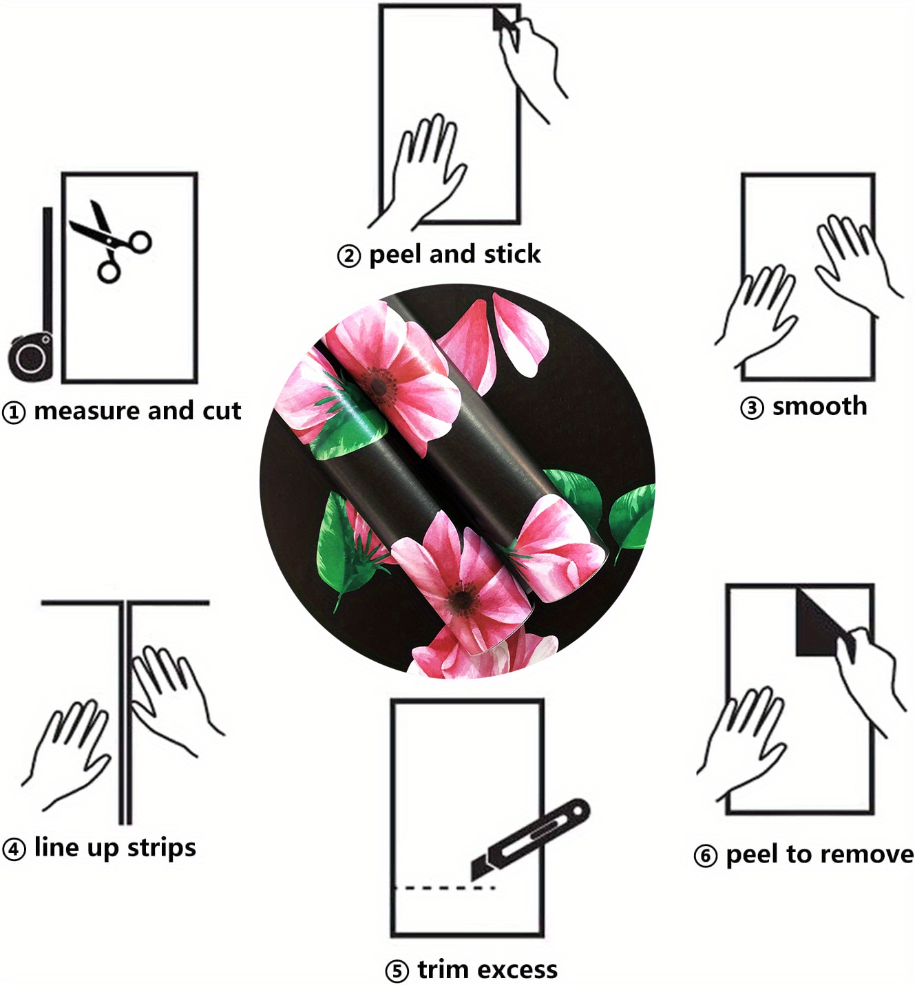 Black Flower 3d Wallpaper Self adhesive Waterproof Pvc Wall - Temu