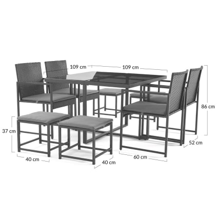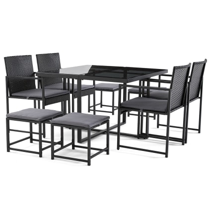 Olaria - ensemble table et chaises de jardin en acier noir - 8 places ...